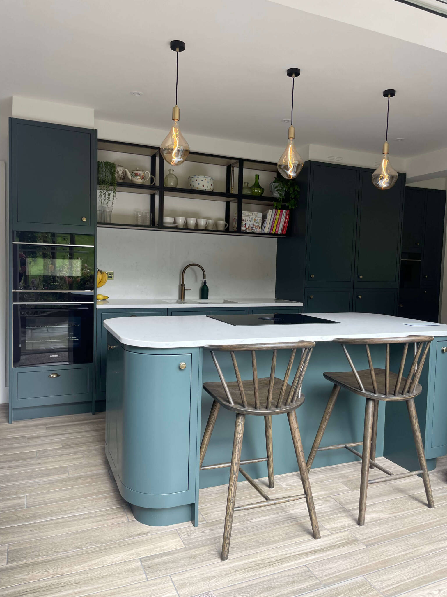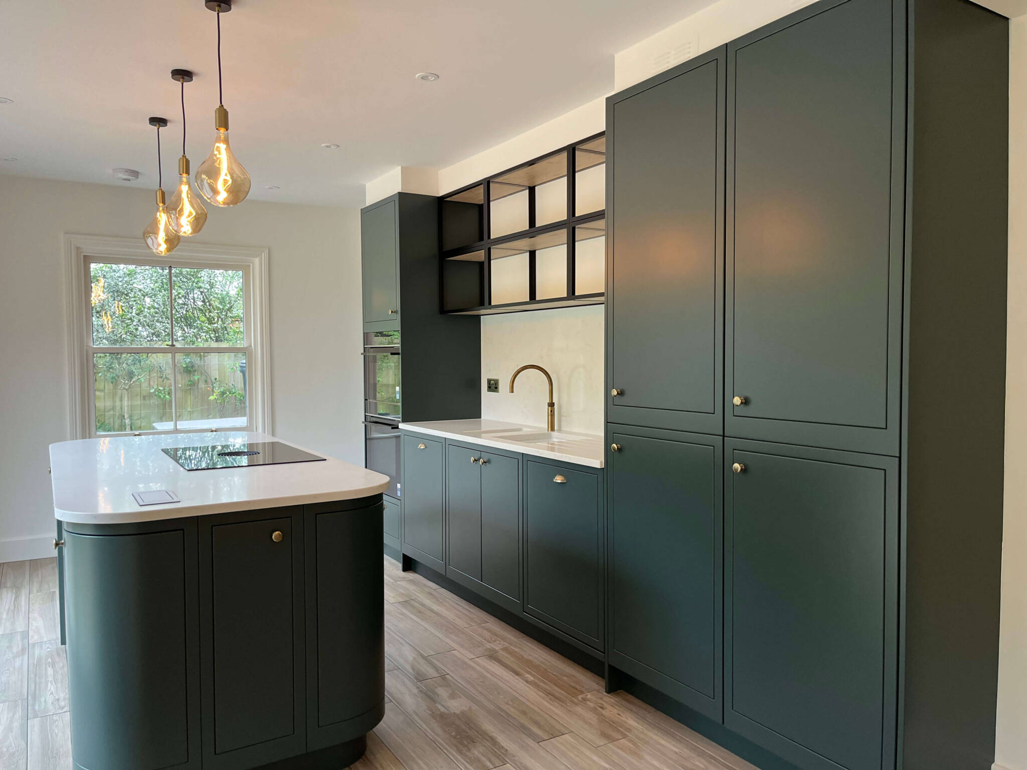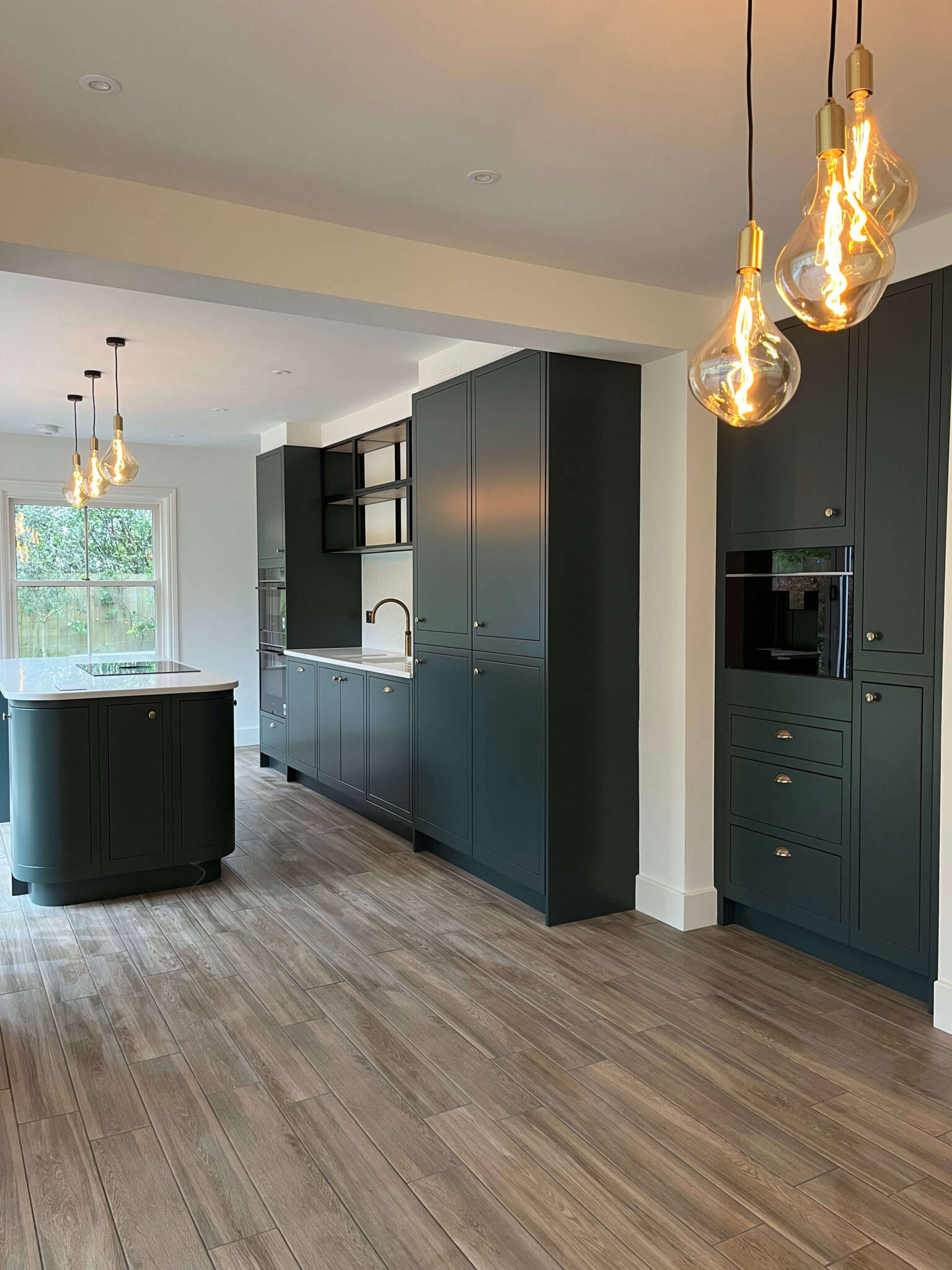 Incorporating touches of luxury, we designed a bespoke gin drinks cabinet to fit perfectly within the existing room. This elegant feature adds a sophisticated flair to the kitchen. Additionally, a wine lover corner was created, complete with a wine cooler, built-in marble worktops, and antique mirrors. These elements combine to offer a refined and stylish space.