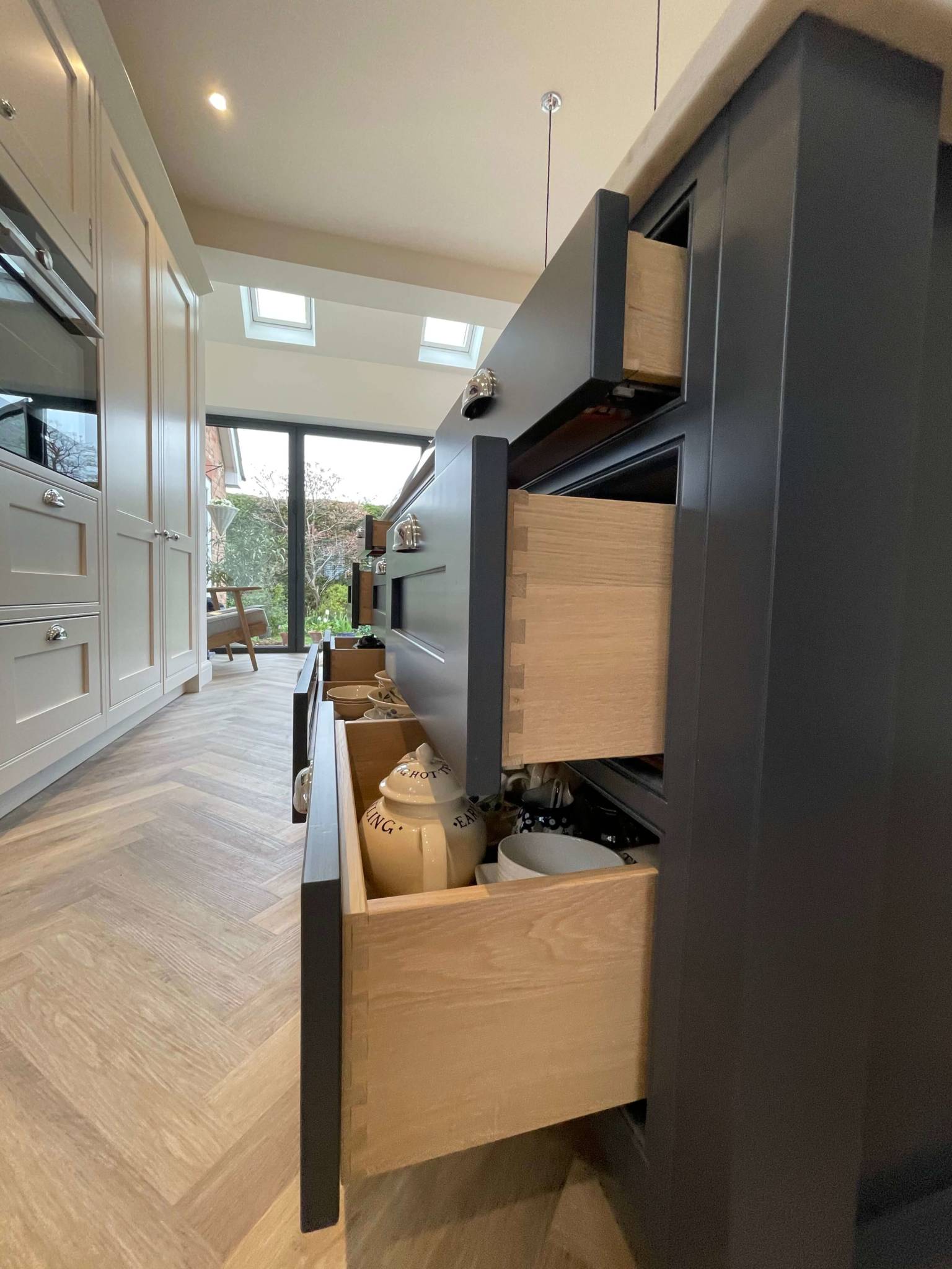 Our hand built bespoke in frame cabinetry, where intricate in frame detailing meets a classic shaker, offering a timeless elegant twist.