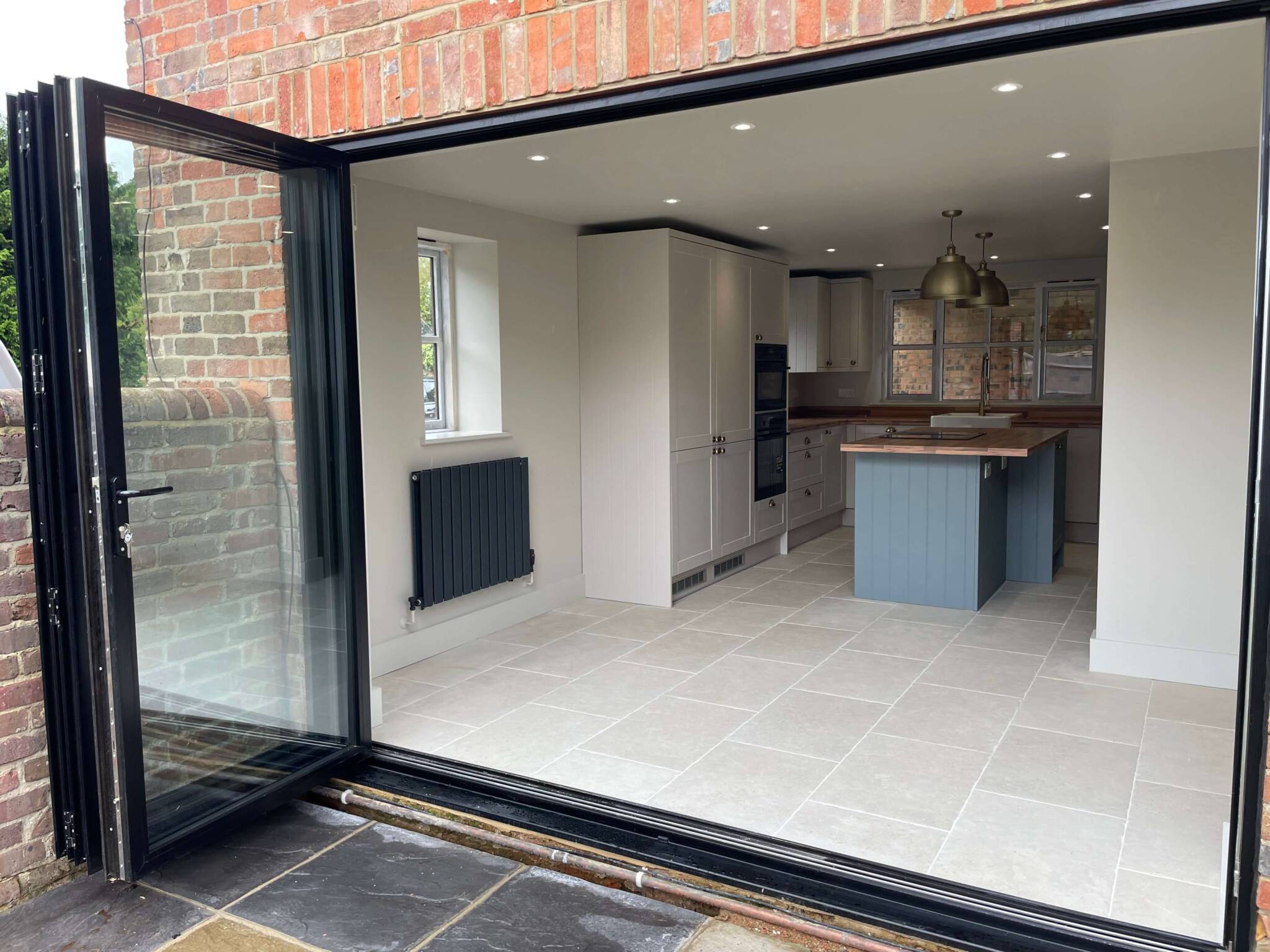 The addition of bifold doors allows for maximum light entry and an unobstructed view of the garden.