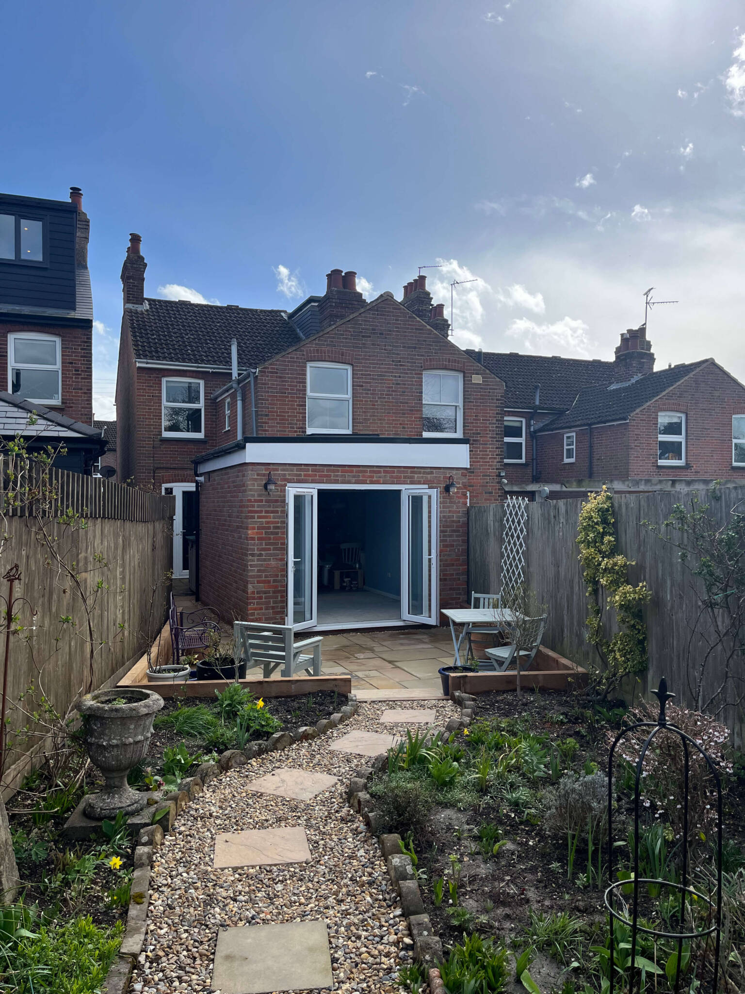 This charming semi-detached period property was yearning for additional living space. With the addition of a single-story rear extension, built to align with the property’s boundaries and featuring a slightly unique shape, this need has been beautifully met.
